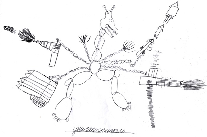 Сконструйована з частин різних тварин, яка відповідає стандартній схемі тварини – раціоналістичний, нетворчий підхід до задачі.