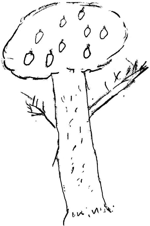 Якщо дитина малює стовбур і гілки однією лінією без переривання, це його бажання втекти від реальності, відмова реально дивитися на речі. Якщо всі гілки з’єднані в коло, то це бажання надавати допомогу іншим. Достаток гілок, зелені, бажання зайнятися собою, своїм зростом.
