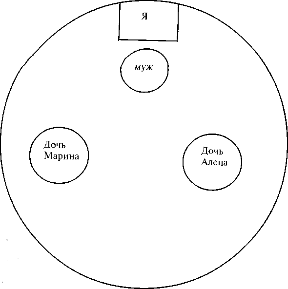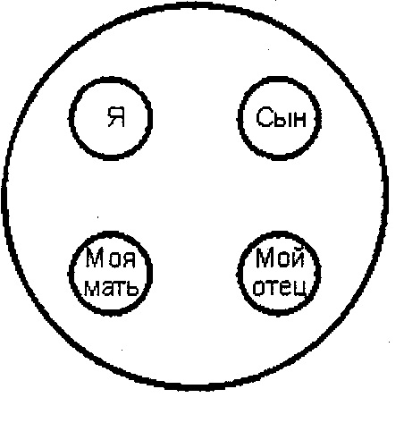 Інструкція: “Перед Вами на аркуші зображено коло. Намалюйте в ньому самого себе, членів сім’ї у формі кружечків і підпишіть їх імена”.