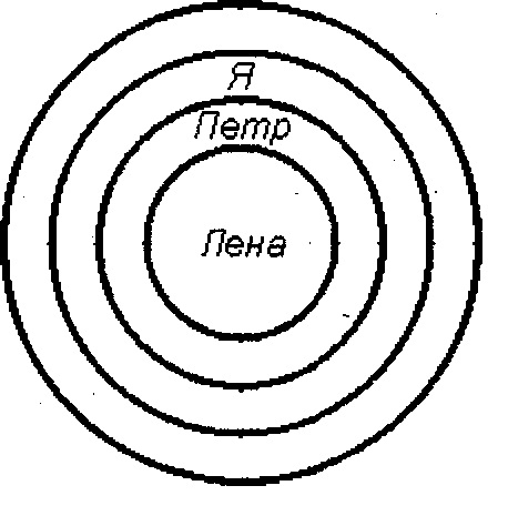 3) розташування кіл відносно один одного, дистанція між ними – говорить про характер взаємин між членами сім’ї.