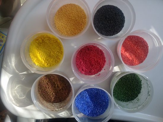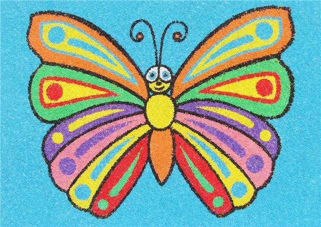 Кольоровий пісок – це чудовий матеріал для виготовлення різних виробів. За допомогою нього можна оформити подарункові листівки чи картини. Крім того, це масаж для долоньок і розвиток дрібної моторики. Він дуже приємний на дотик, діти отримують велике задоволення просто бавлячись з ним.