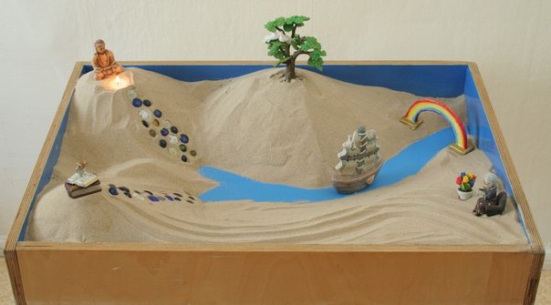 Песок вызывает приятные ощущения в пальцах и кистях; благодаря ему возникает идеальный тактильный и кинестетический опыт. Поскольку описанная игра с песком не слишком знакома большинству детей, она возбуждает их интерес. Ребенок может воздвигать на песке свое собственное миниатюрное изображение мира. Таки образом он может многое рассказать о себе без слов.