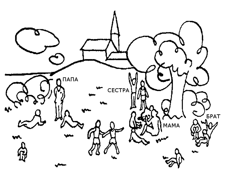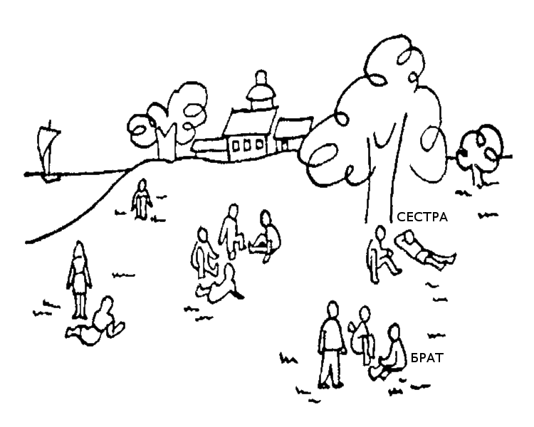 17. Тепер на цьому малюнку розмісти кілька людей і себе. Намалюй або познач хрестиками. Підпиши, що це за люди.