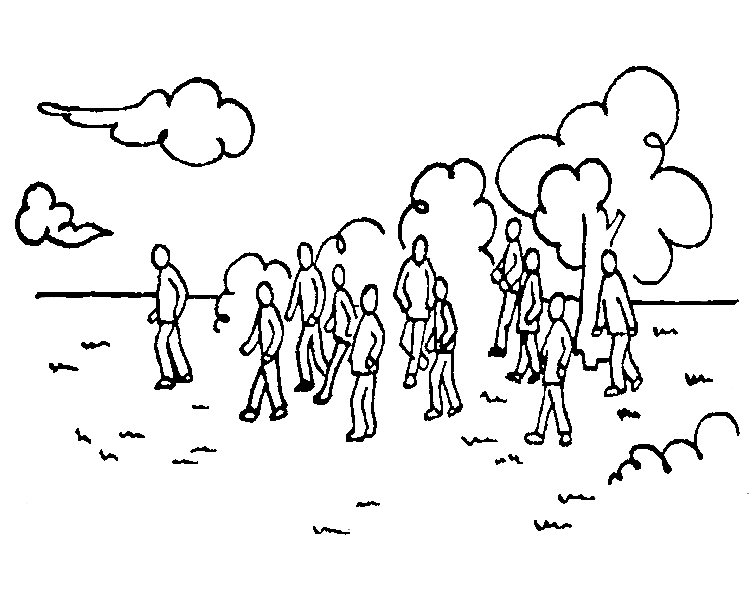 20. Ось твої товариші йдуть на прогулянку. Познач хрестиком, де знаходишся ти.