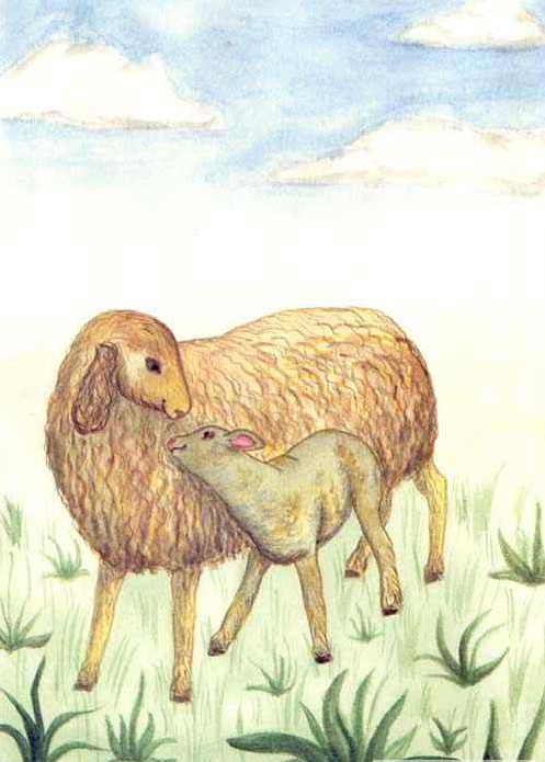«Жила-була вівця зі своїм ягням. Ягня було уже велике, і їло траву. Увечері мама давала йому трохи молока, яке воно дуже любило.