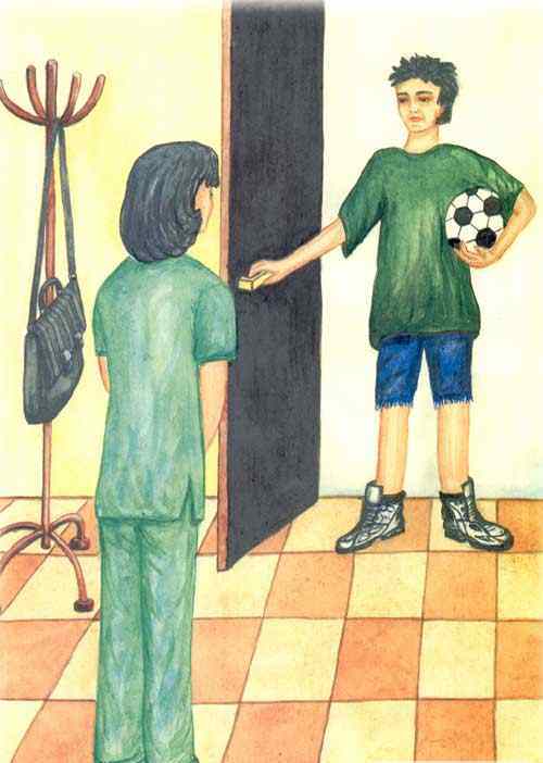 - мама хоче покарати хлопчика, за те, що він пішов гуляти без дозволу;