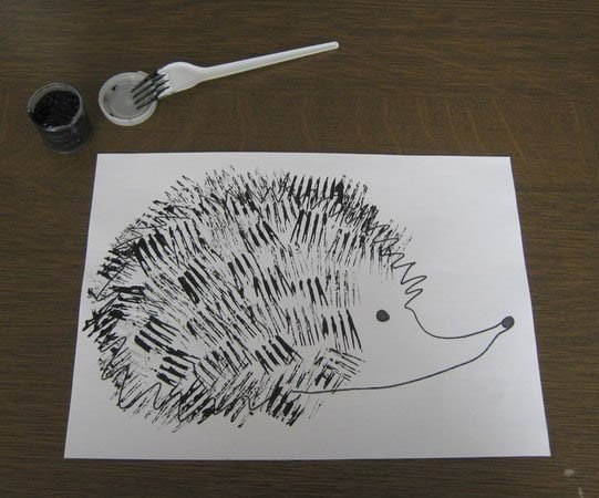 4. Незвичайні пензлики для малюка – пластикова вилка, якою ідеально малювати лісового їжачка.