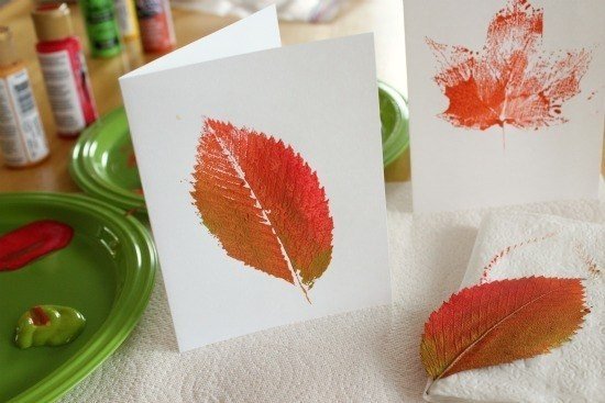 6. Пофарбувавши звичайне листя, можна залишити ним сліди на папері.