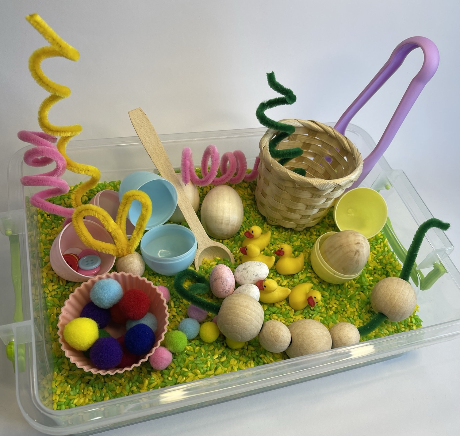 Підійде будь-яка ємність – картонна коробка, дерев’яна коробка, пластиковий контейнер, миска і навіть надувний басейн. Важливо, щоб діти мали вільний доступ до «коробки», та щоб грати було зручно не тільки наодинці, але і з друзями.