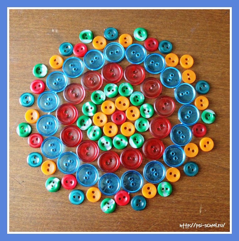 Хід гри: Викладати візерунки з ґудзиків на столі, тобто “Малювати”, також можна обводити їх на аркуші