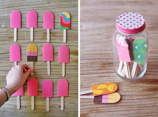 Гра призначена для тренування візуальної пам’яті. Це варіант всім відомої гри “Меморі”. Можливо такий варіант буде більш цікавий дітям, оскільки морозиво люблять усі. Вам необхідно підготувати 6 і більше пар морозива. Для цього візьміть палички для справжнього морозива і виріжте самі “морозивка” із різнокольорового паперу чи картону. Склейте їх, встваивши в середину палички. Зробіть морозиво з апельсинами, бананове, ягідне, шоколадне, будь-яке, яке тільки забажаєте.