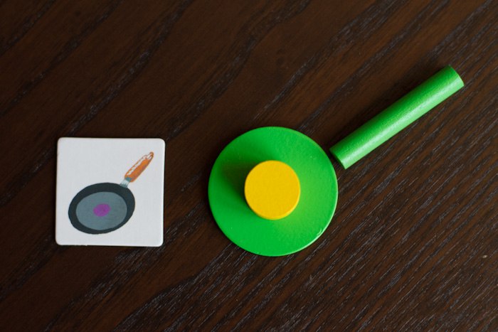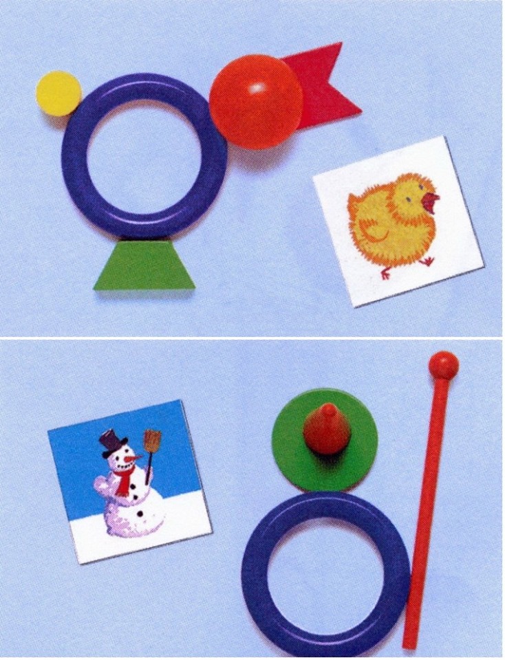 Суть гри в тому, щоб із різноманітних матеріалів, (шнурочків, кришок, вирізаних геометричних фігур з картону і т. д.) які з легкістю можна знайти вдома, відтворити предмет, який намальований на малюнку.