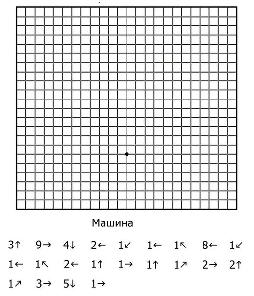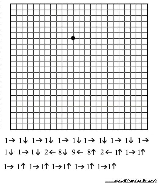 2. Дорослий диктує послідовність дій із зазначенням числа клітинок і їх напрямів (вліво, вправо, вгору, вниз), дитина виконує роботу на слух, а потім порівнює методом накладання своє зображення орнаменту або фігури зі зразком в посібнику.