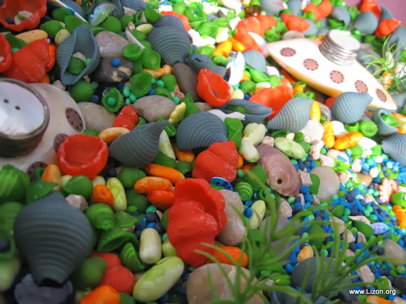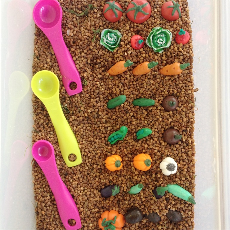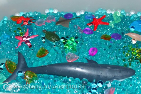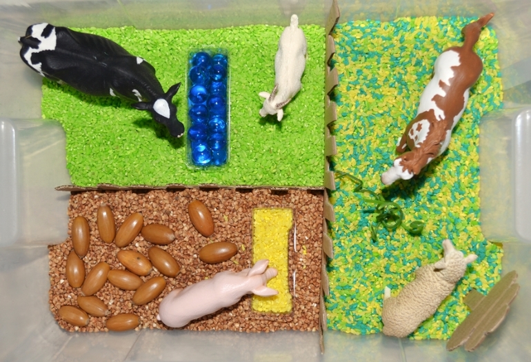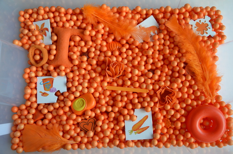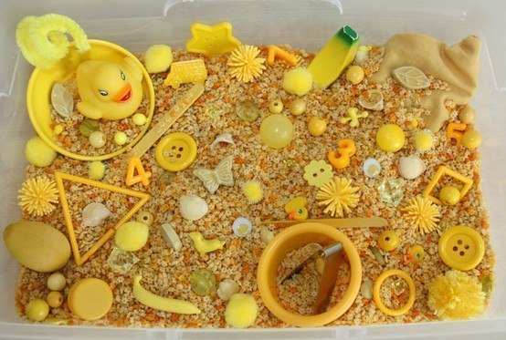 Діткам від року можна поступово додавати більш дрібні деталі до коробки. Але краще, щоб ці дрібні об’єкти були їстівними. Це можуть бути різноманітні крупи, макарони, насіння.