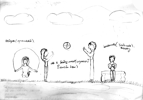 15. Підписи на малюнках. Написані на малюнках слова вимагають особливої уваги. Як правило слова з’являються в тих випадках коли клієнт боїться неправильного тлумачення малюнка, слова покликані внести ясність і точність. Важливо зрозуміти, що саме тлумачиться не так і неправильно розуміється в його житті, і хто не розуміє. В даному випадку можна говорити про недостатню довіру до спонтанних, емоційних і невербальних сигналів своєї психіки, а також недовіру до розуміння іншого.