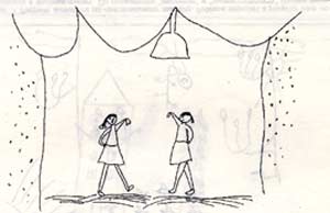 12. Інкапсуляція. Створення оболонки навколо персонажів малюнку передбачає відгородження, необхідність зобразити межі, щоб відокремитися від оточуючих. Це може бути метафорою захисної оболонки. Варто поміркувати які небезпеки можуть бути в навколишньому світі, що фруструє, чого людина боїться, які зовнішні події формують цю оболонку.
