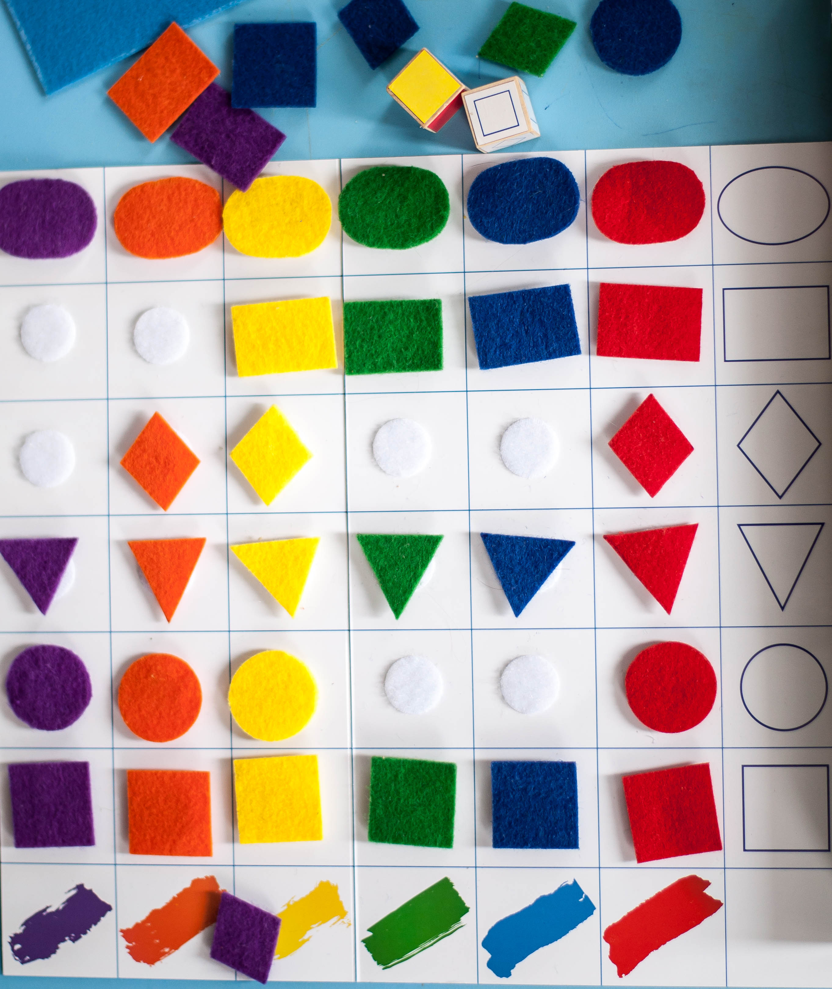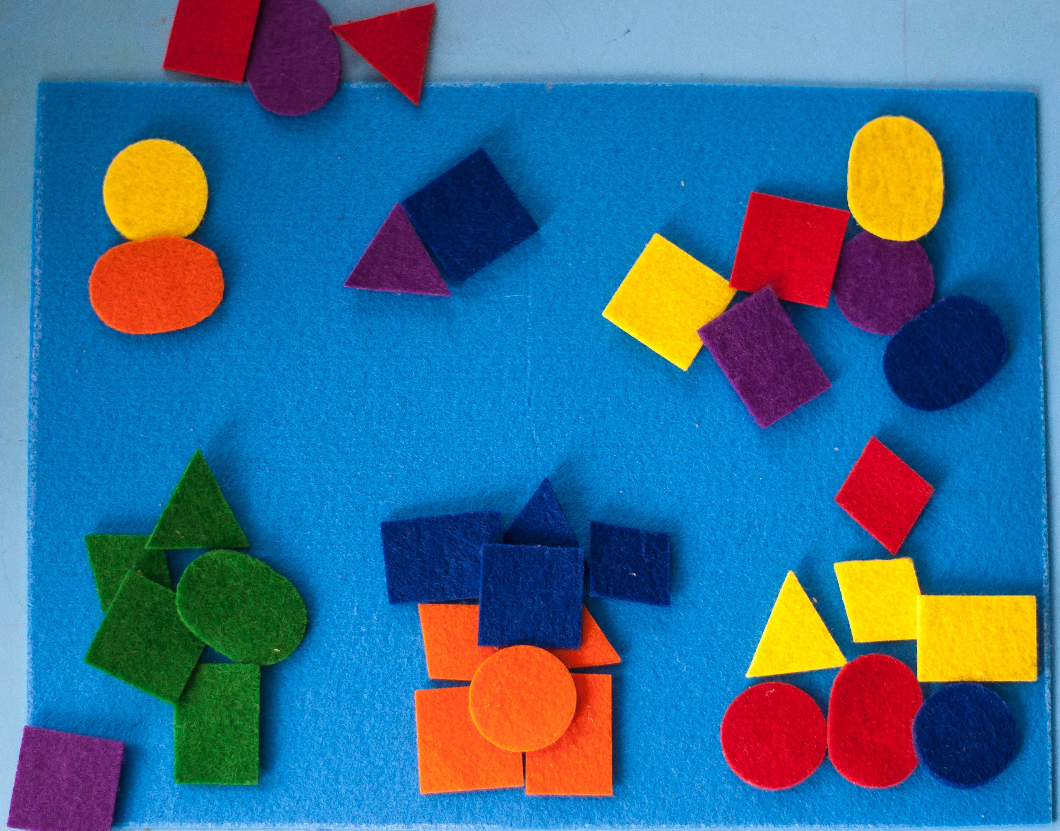 36 геометричних фігур із цупкої фетрової тканини з липучками.