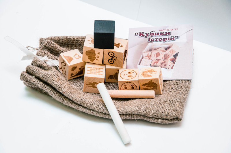 Як не дивно, така знайшлася! Кілька років тому вся Європа раз і назавжди закохалася в гру з назвою «Rory’s Story cubes», що в перекладі означає «Кубики історій». В 9 кубиків, і на кожній їх грані – найрізноманітніші картинки: піраміди, черепахи, фонтани і багато іншого. Тепер, щоб порадувати неповторною історією, варто просто кинути кубики на поверхню і розповісти, що бачиш.