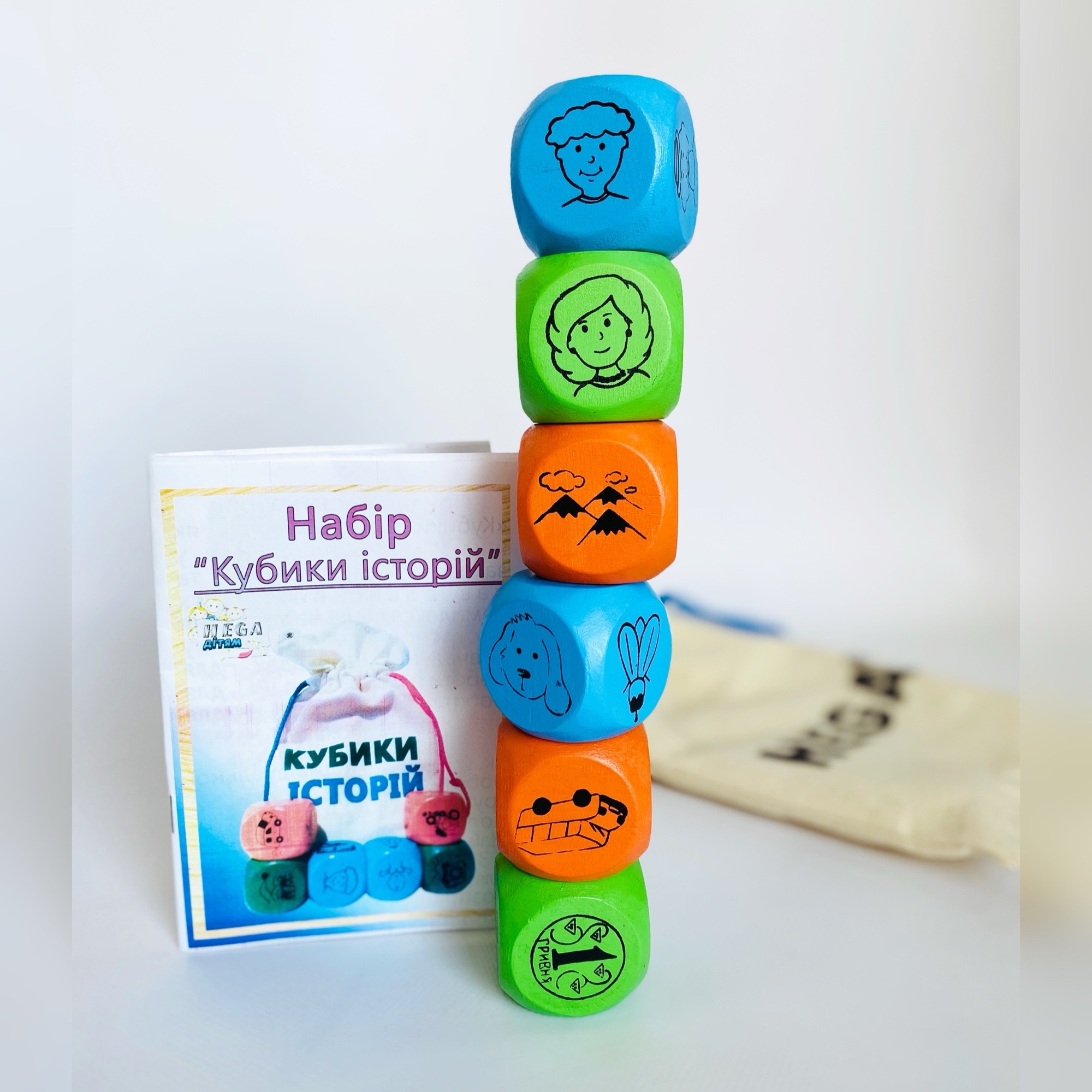 Дітям корисно розповідати історії. Через свою розповідь дитина вчиться правильно висловлювати свої думки і вибудовувати логічні ланцюги подій. А при використанні картинок в процесі уяви також розвивається асоціативне й логічне мислення. Однак нерідко батьки стикаються з небажанням дитини уявляти. Швидше за все, їй не вистачає стимулу та інтересу до запропонованого заняття. «Кубики історій» допоможуть і в цьому творчому завданні. У кубиках історій дитина бачить просто цікаву гру і з задоволенням стає її учасником.