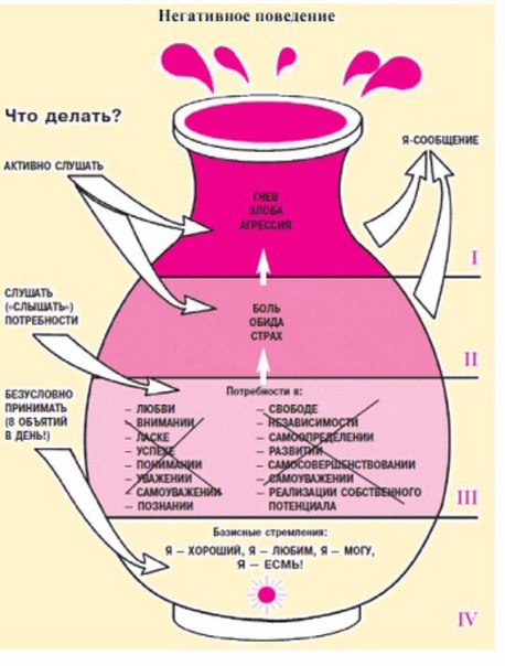 Зобразимо «посудину» наших емоцій у формі глечика. Помістимо гнів, злість і агресію в найвищій його частині. Тут же покажемо, як ці емоції проявляються в зовнішній поведінці людини. Це так, на жаль, знайомі багатьом обзивання і образи, сварки, покарання, дії «на зло» і т.п. Читати далі
